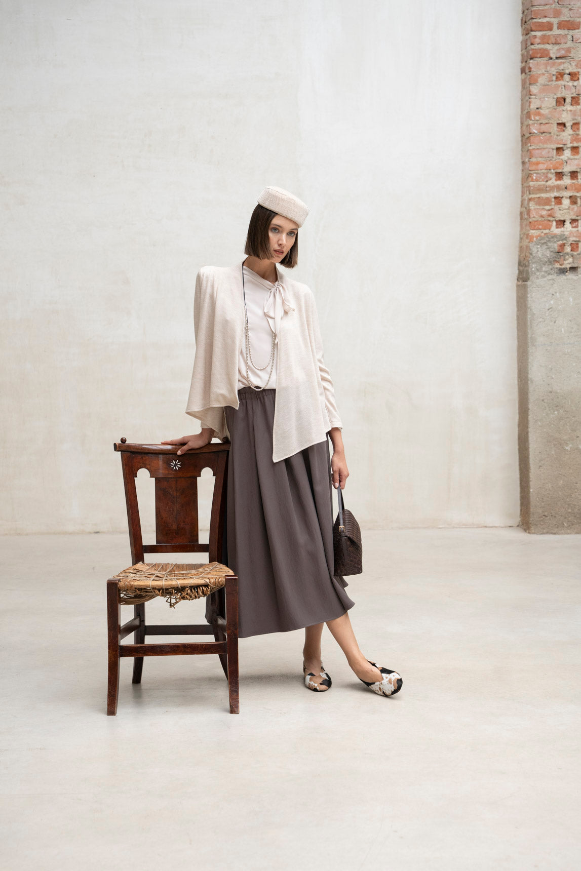 - Diseñado por Alexia Álvarez de Toledo para Rivera y pensado para coordinar con la Cazadora Tera arena de la colección o con cualquier prenda.