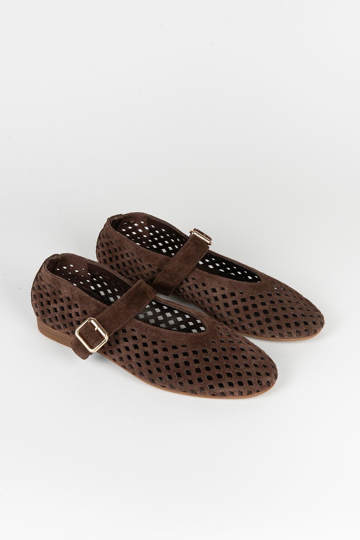 The brown Buco Mary Jane combines a classic design with a contemporary finish thanks to its openwork structure that adds lightness and texture to the overall look. Its sleek silhouette gently molds to the foot, creating a comfortable and feminine shoe ideal for everyday wear.
