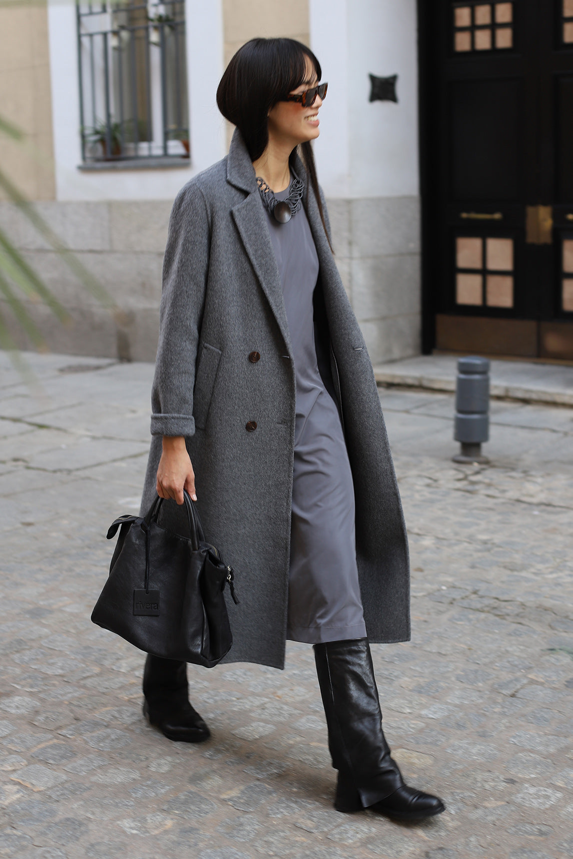 The gray Aosta coat is the perfect choice for those looking for an elegant and versatile winter piece. Its minimalist design and structured cut add sophistication to any outfit, while its warm fabric ensures comfort on colder days. Ideal for pairing with dresses, pants, or skirts, this coat will become a must-have in your seasonal wardrobe.