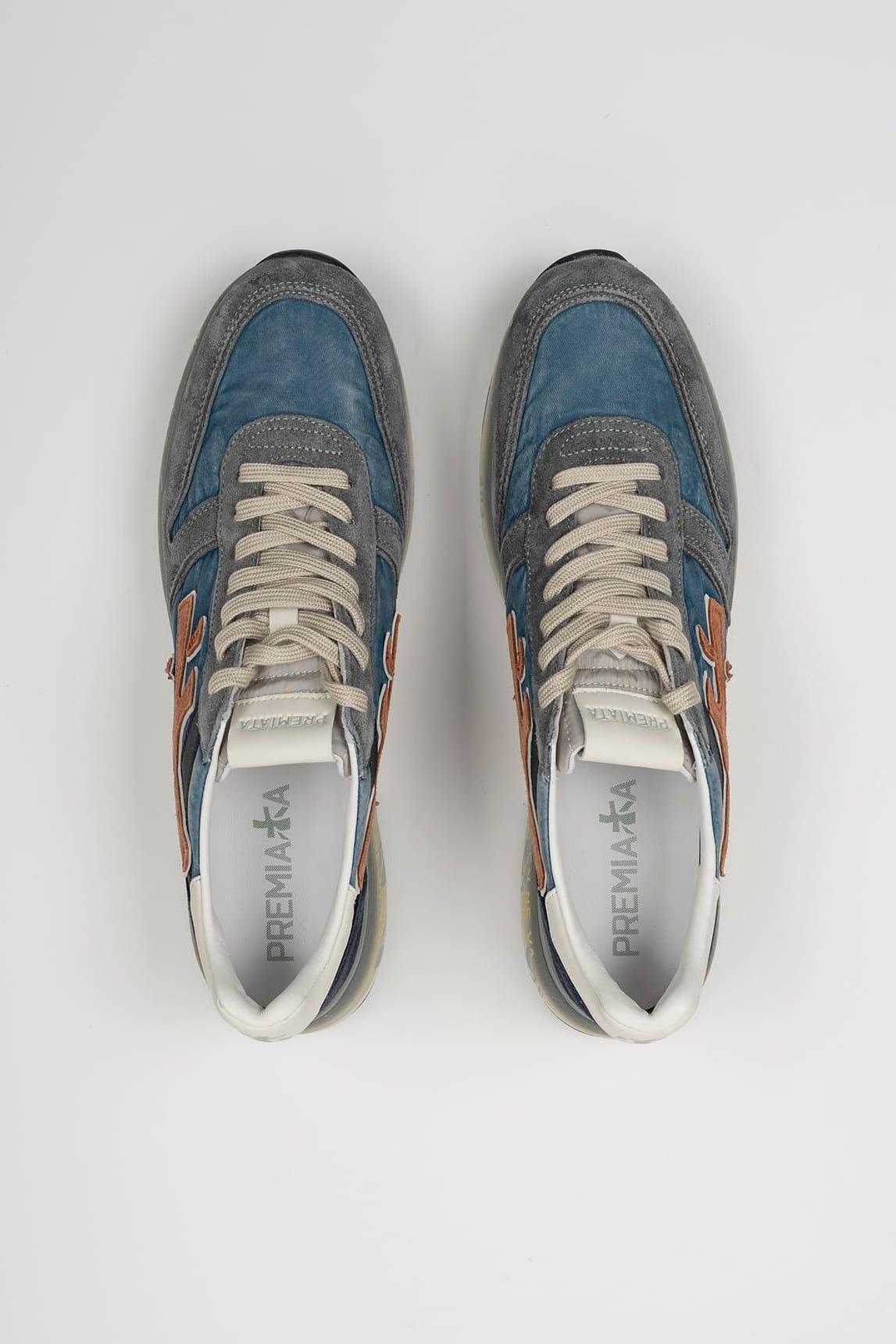 The Premiata Mick 7215N sneakers reinterpret the classic runner style in a combination of blue, gray, and neutral tones that provide depth and visual balance. Their construction blends suede and technical fabric, creating a distinctive interplay of textures. The white logo on the side and the custom sole with graphic prints reinforce the brand's identity. The lightweight midsole provides cushioning and stability, making them a comfortable choice for everyday wear. An urban and versatile model that fits both relaxed styles and more carefully chosen combinations with structured trousers or minimalist garments. We strive to display colors as accurately as possible, but they may vary slightly from reality.