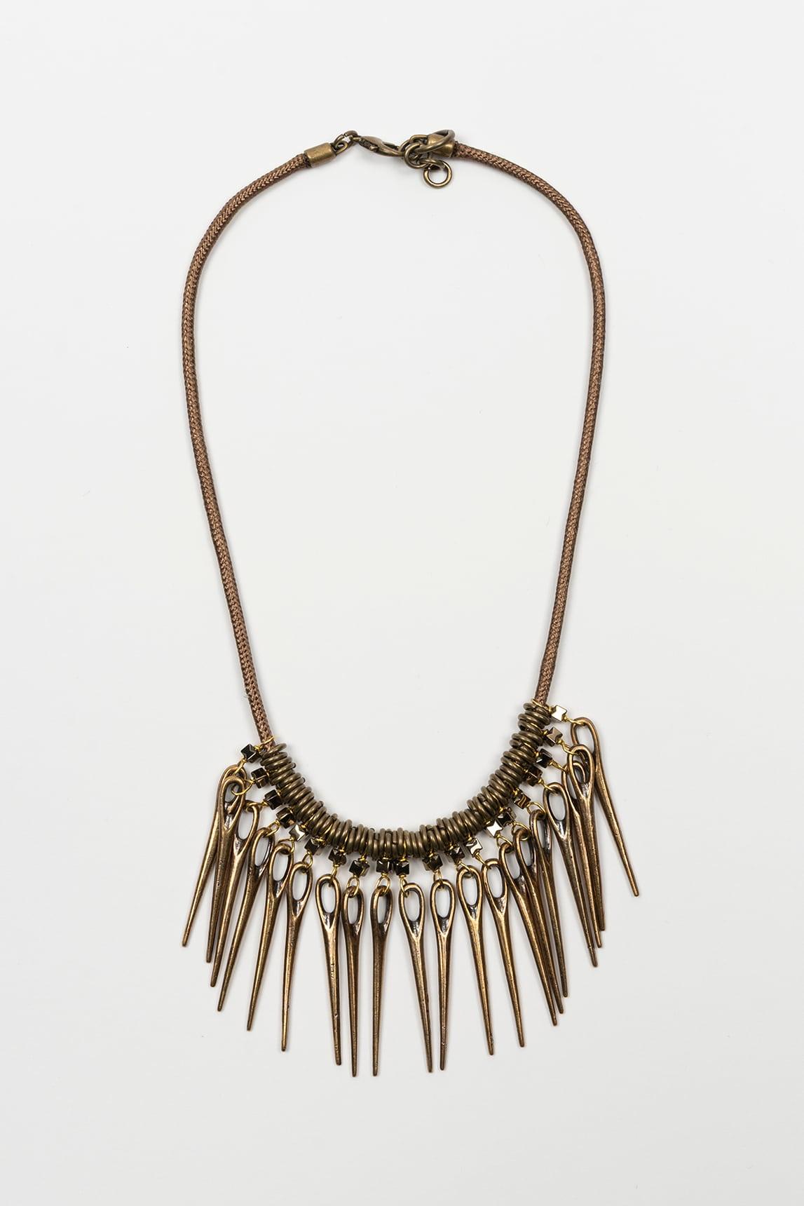 The Zerina brass necklace stands out for its handcrafted design with a contemporary feel. Its structure combines a slightly rigid base with a series of irregularly shaped, rod-like pendants that add dynamism and movement to the overall piece. The brass finish enhances its warm and luminous aesthetic, adding an aged gold hue that pairs particularly well with neutral tones, whites, ecru, or natural fabrics like linen and cotton. Its structured design balances the drape of the lower elements, creating a powerful yet elegant visual effect. It's a key piece designed to elevate simple looks and add texture without excess. We strive to display colors as accurately as possible, but they may vary slightly from reality.