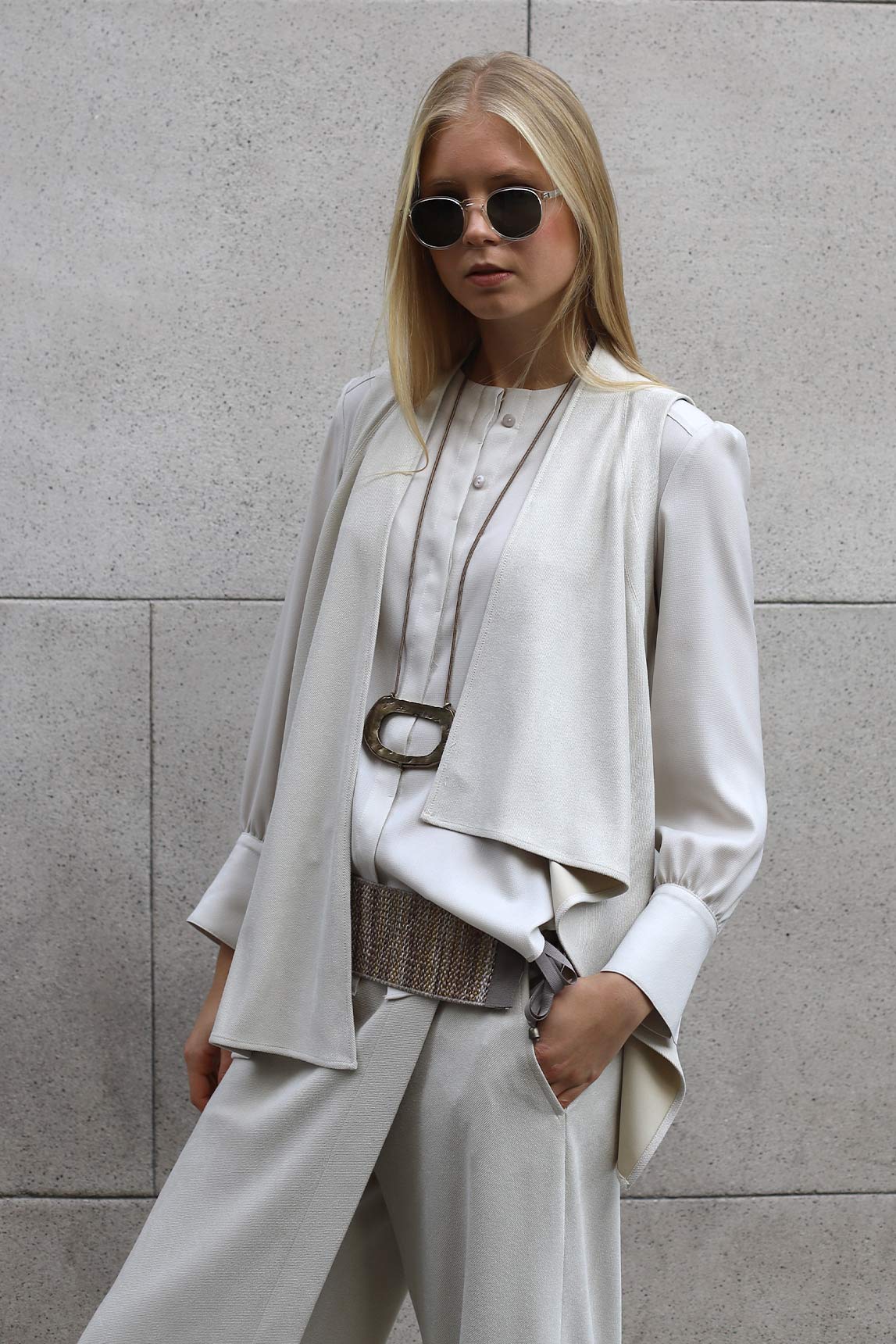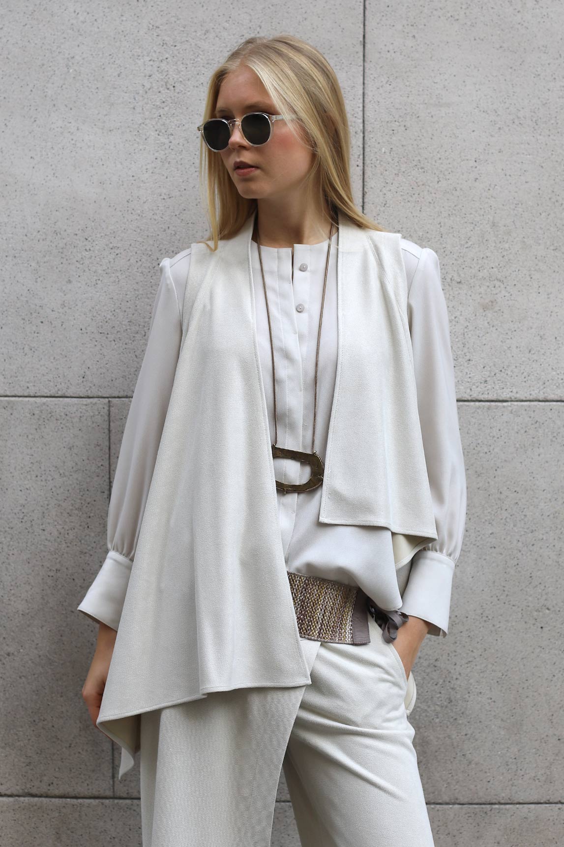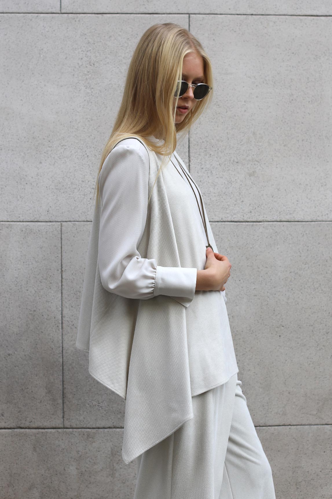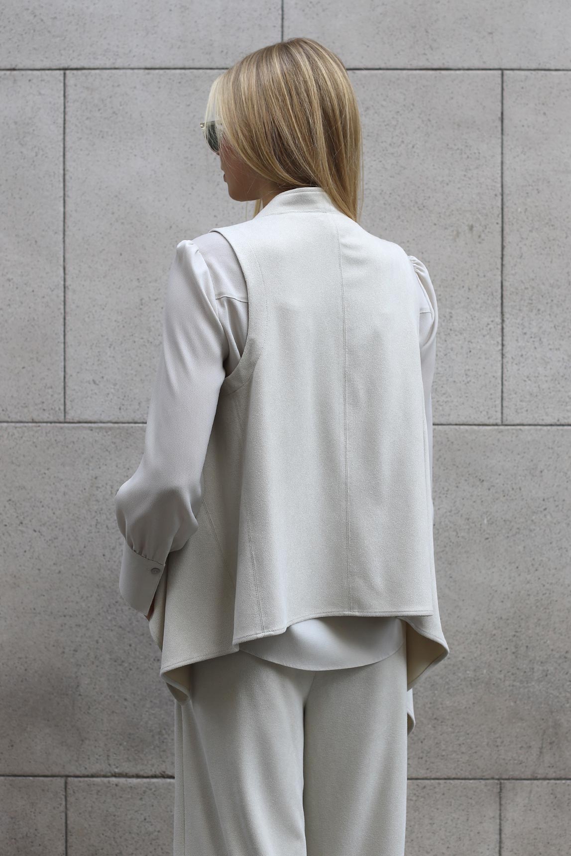 El chaleco Varenna en color crudo ilumina cualquier look y suma sofisticación sin esfuerzo. Su silueta abierta y la fluidez del tejido lo convierten en una prenda versátil para crear capas elegantes tanto de día como de noche.
