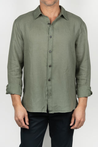 Su tono verde caqui aporta un carácter relajado y elegante que combina fácilmente con una amplia variedad de prendas y estilos. El cuello clásico, el cierre frontal con botones y su corte equilibrado refuerzan su estética atemporal, convirtiéndola en una camisa funcional que puede adaptarse tanto a looks casuales como a estilismos más cuidados.
