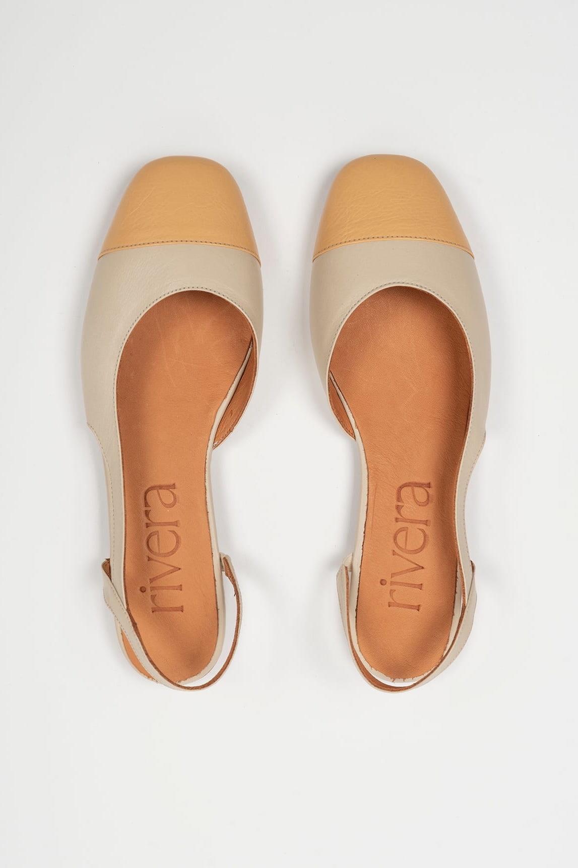 La sandalia Belara Vainilla mantiene la arquitectura limpia y equilibrada del modelo, con pala frontal cerrada y diseño bicolor suave y luminoso. La parte trasera abierta aporta frescura visual, aligerando la silueta y haciéndola ideal para los meses cálidos. La sujeción se realiza mediante una tira fina que abrocha únicamente en el lateral exterior, creando un efecto asimétrico elegante y muy depurado. Este detalle estiliza el conjunto y refuerza su carácter contemporáneo sin añadir peso visual. La combinación en tono vainilla, delicada y cálida, aporta luminosidad sin resultar fría. Funciona especialmente bien con blancos suaves, arena, lino natural o tonos tierra claros, integrándose con naturalidad en estilismos minimalistas o conjuntos más cuidados. Una sandalia plana refinada, ligera y versátil, pensada para aportar equilibrio entre estructura frontal y apertura posterior con una estética limpia y sofisticada. Nos esforzamos por mostrar los colores de la forma más fiel posible, pero pueden variar ligeramente respecto a la realidad.