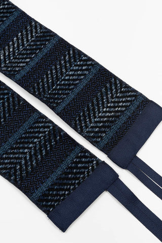 Este fajín es un imprescindible de la temporada otoño-invierno. Con un diseño de espiga en azul marino, negro y toques grisáceos, aporta profundidad visual y textura a cualquier look. Las cintas de grosgrain en azul marino con remates metálicos permiten ajustarlo fácilmente a la cintura, realzando la silueta con un toque elegante. Su interior forrado garantiza comodidad en el uso diario. Ideal para complementar abrigos, camisas o vestidos con un aire sofisticado y contemporáneo.