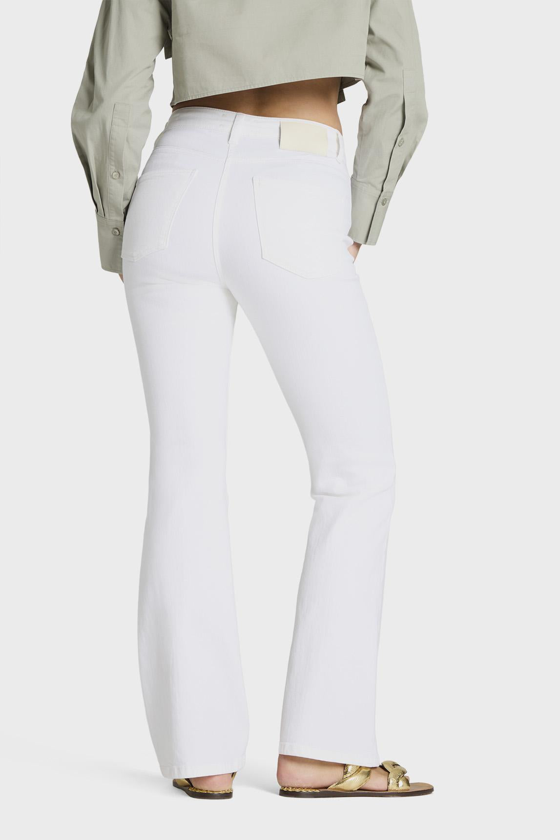 El pantalón Fabinne blanco de Cambio es una prenda elegante y versátil que se adapta con facilidad a estilismos contemporáneos. Su diseño de líneas limpias y corte ligeramente acampanado estiliza la silueta, creando una caída fluida y favorecedora que aporta equilibrio y sofisticación al conjunto.