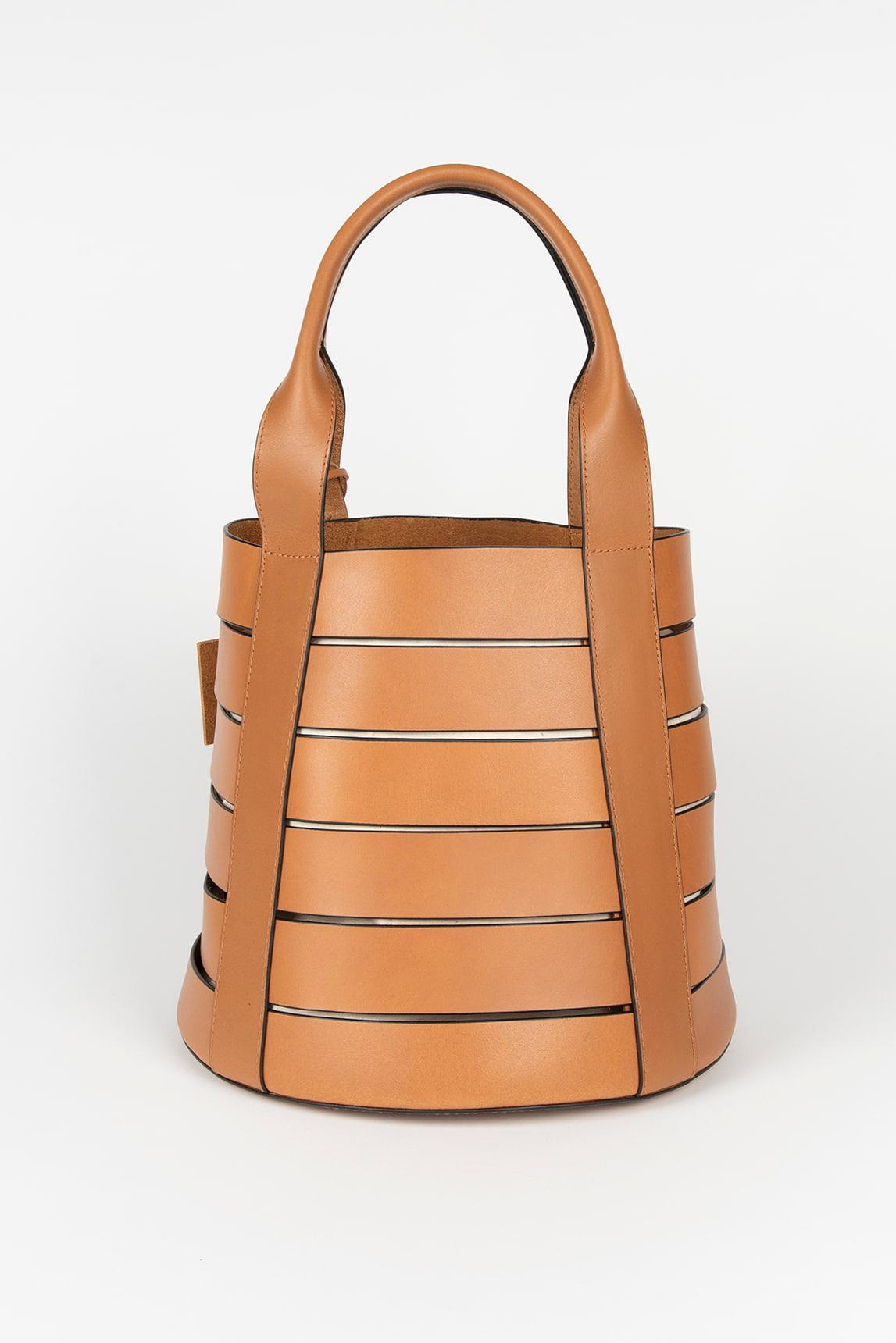 Bolso de piel en tono cuero, un color cálido y luminoso que realza el acabado natural del cuero y aporta personalidad a cualquier estilismo. Su diseño tipo bucket estructurado con bandas horizontales crea un efecto arquitectónico moderno y muy reconocible. Las asas largas permiten llevarlo cómodamente al hombro o en la mano, aportando elegancia y firmeza al conjunto. Su estructura cilíndrica mantiene la forma sin perder ligereza, convirtiéndolo en un bolso versátil tanto para uso diario como para ocasiones especiales. Con medidas de 17 x 12 x 10,5 cm y asa de 7 x 5,5 cm, ofrece buena capacidad interior sin resultar pesado. Es ideal para quienes buscan un bolso de piel original, estructurado y diferente a los formatos clásicos. Un bolso tipo cubo en piel que combina diseño contemporáneo y funcionalidad. Nos esforzamos por mostrar los colores de la forma más fiel posible, pero pueden variar ligeramente respecto a la realidad.