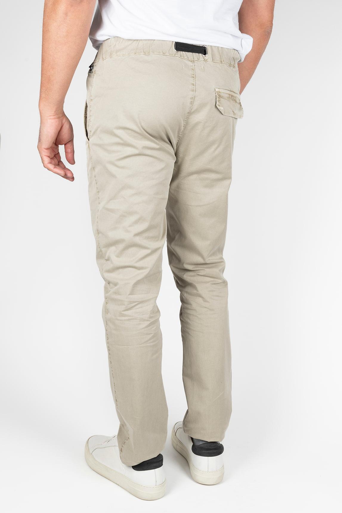 Este pantalón en tono piedra presenta una silueta relajada con pernera larga y una caída natural que aporta ligereza al conjunto. La cintura elástica incorpora una cinta integrada con cierre tipo clip visible, un detalle funcional que define su carácter contemporáneo y práctico. Los bolsillos laterales y el frente limpio mantienen una estética equilibrada, mientras el tejido de apariencia lisa y ligeramente flexible refuerza su uso cómodo en el día a día.