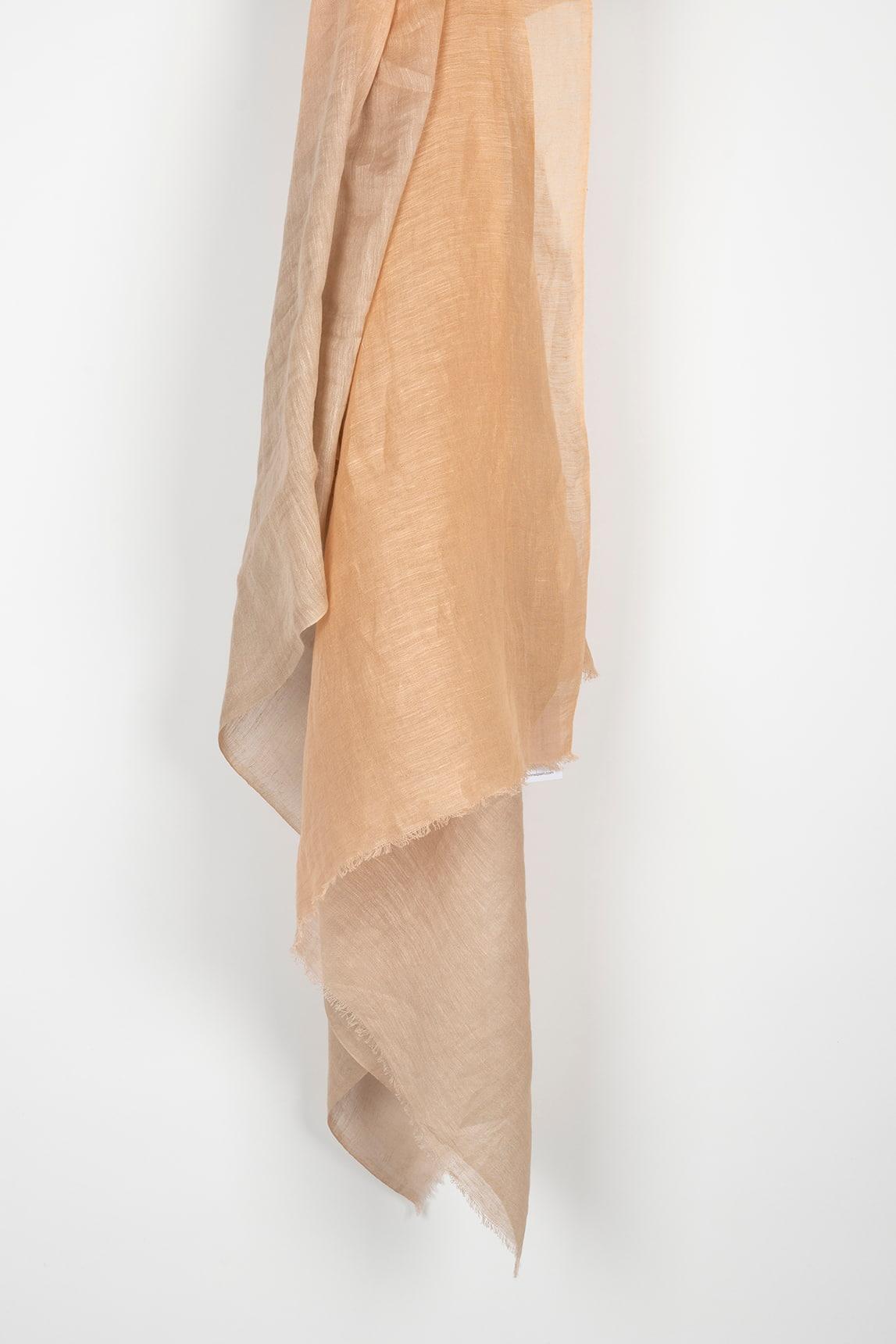 Fular ligero de 70% lino y 30% algodón, con acabado suavemente arrugado y una transparencia delicada que deja ver su textura natural. Presenta un degradado sutil en tonos beige/arena y remates limpios con un deshilachado fino que aporta un aire artesanal y relajado. De estilo etéreo y minimalista, es el aliado perfecto para entretiempo y verano: sobre los hombros al atardecer, anudado al cuello en días de brisa o como toque elegante en looks monocromos. Aporta luz y suavidad sin recargar, combinando especialmente bien con blancos, crudos, camel y denim claro. Nos esforzamos por mostrar los colores de la forma más fiel posible, pero pueden variar ligeramente respecto a la realidad.