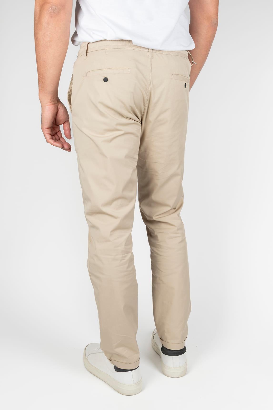 Su corte equilibra comodidad y definición, ofreciendo un fit cómodo en la parte superior y una caída estilizada a lo largo de la pierna. Es una prenda fácil de integrar en un armario contemporáneo, ideal para combinar con camisetas lisas, polos, camisas informales o prendas de punto ligero. El beige suaviza el conjunto y permite construir looks neutros, luminosos y muy fáciles de coordinar.