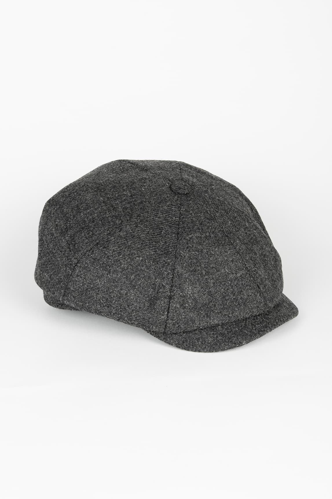 - Gorra estilo “newsboy” (boina inglesa) con visera corta.