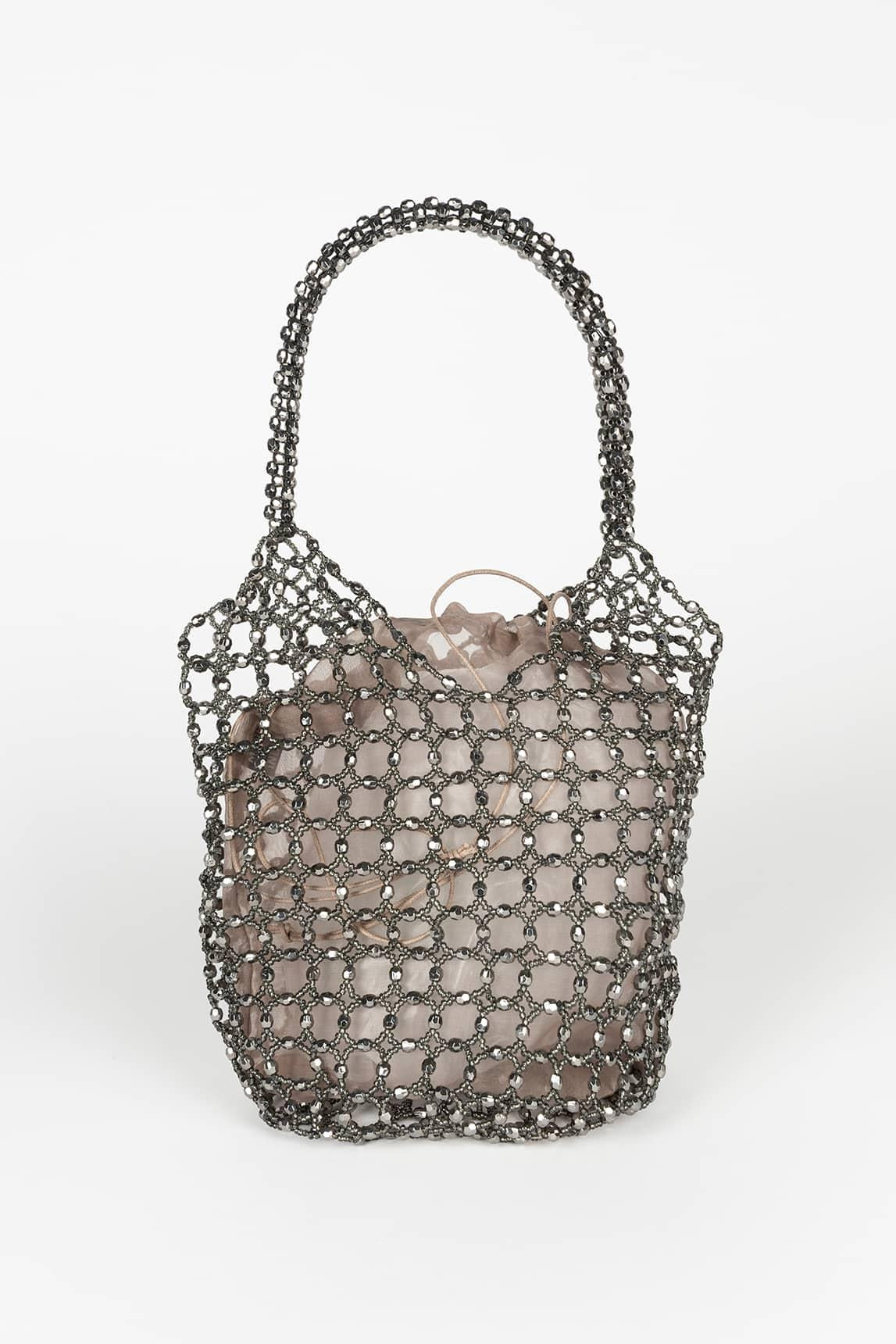 The metallic Lysenne bag is a jewel-like handbag designed to elevate evening looks, special events, and celebrations. Its metallic mesh structure with microcrystals creates a shimmering and sophisticated effect, making this party bag the absolute centerpiece of any outfit.
