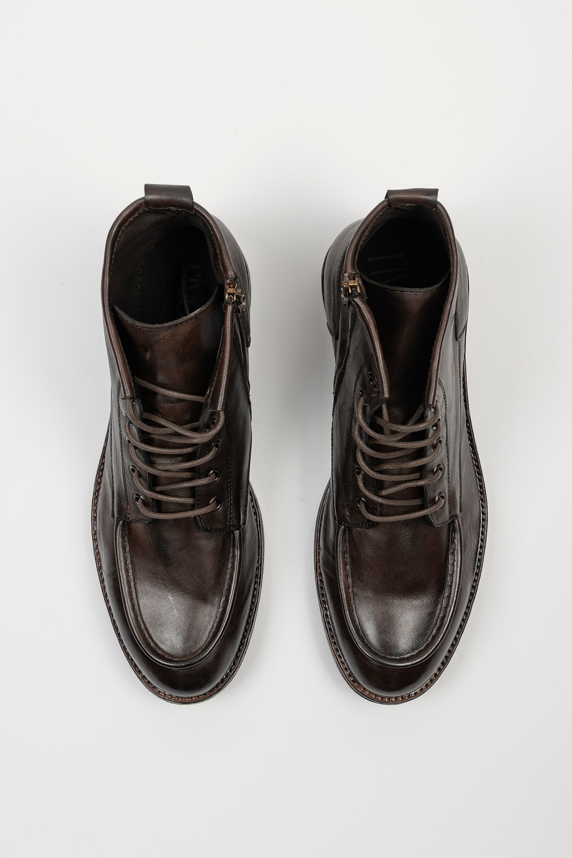 Este botín está pensado para hombres que buscan un calzado versátil, elegante y funcional. Su acabado en piel marrón oscuro lo convierte en una opción perfecta tanto para looks casuales como para conjuntos más formales, adaptándose fácilmente al día a día urbano o a ocasiones especiales.