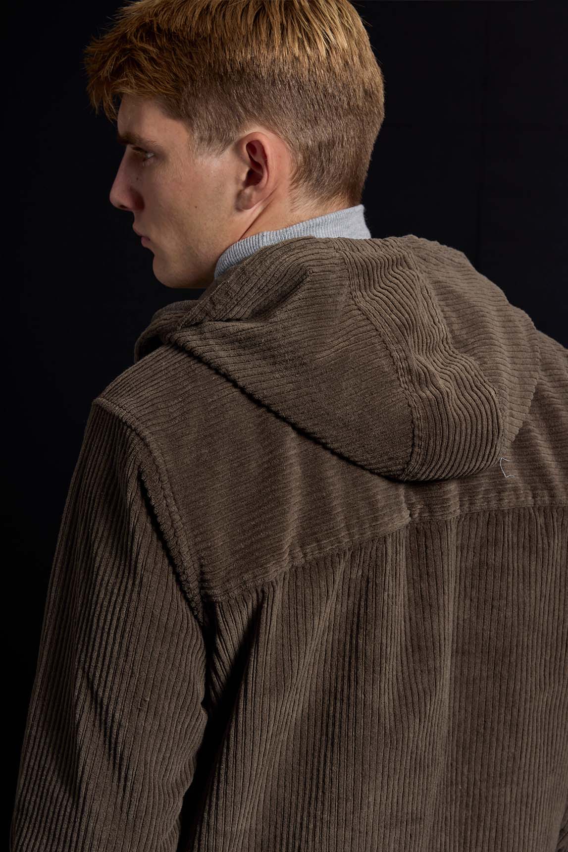 - Camisa tipo sobrecamisa en pana marrón de canalé ancho.