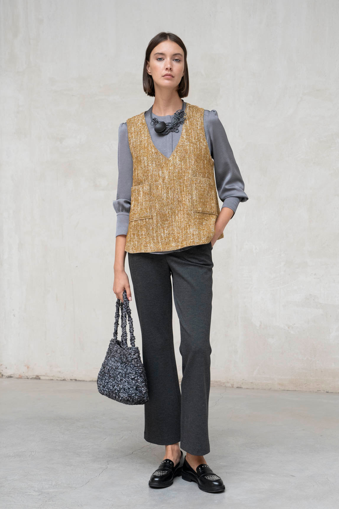 El Top sin mangas Pavia mostaza jaspeado es una prenda versátil que aporta color y estilo a tus looks. Ideal para combinar con camisas, blusas o jerséis ligeros, su diseño sin mangas facilita la superposición y permite crear conjuntos llenos de personalidad. Perfecto para el entretiempo o para dar un punto de calidez en días frescos.